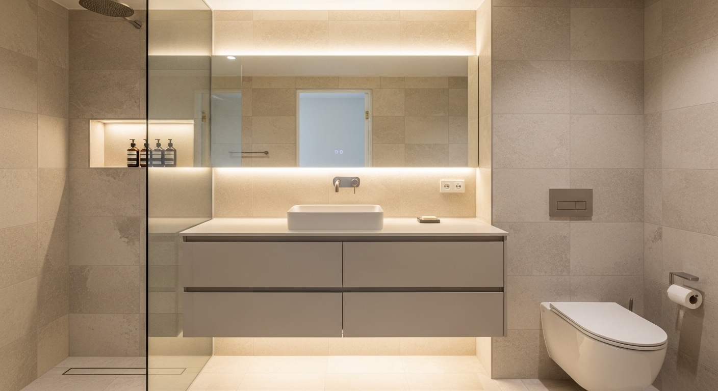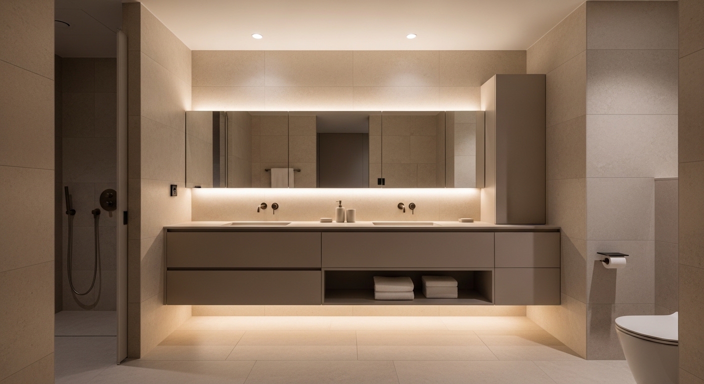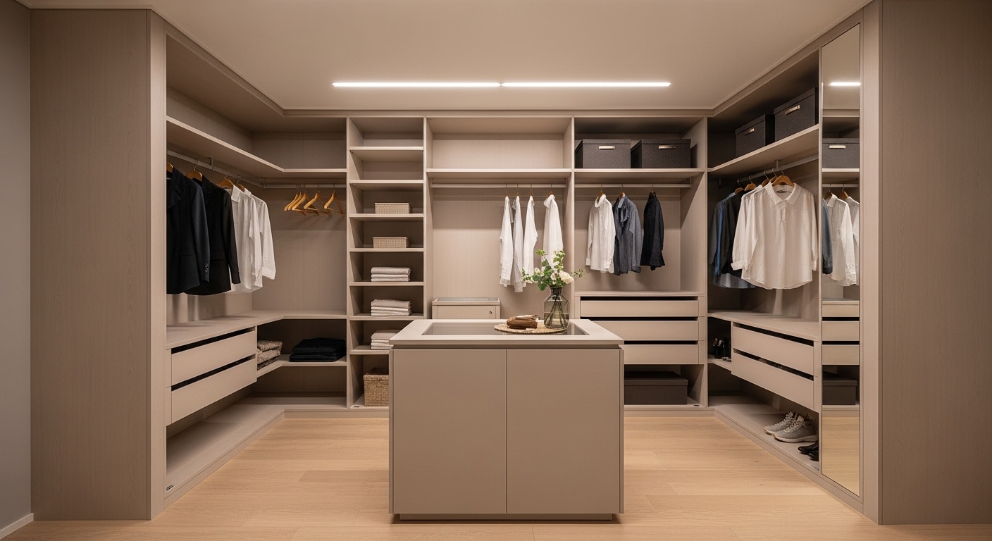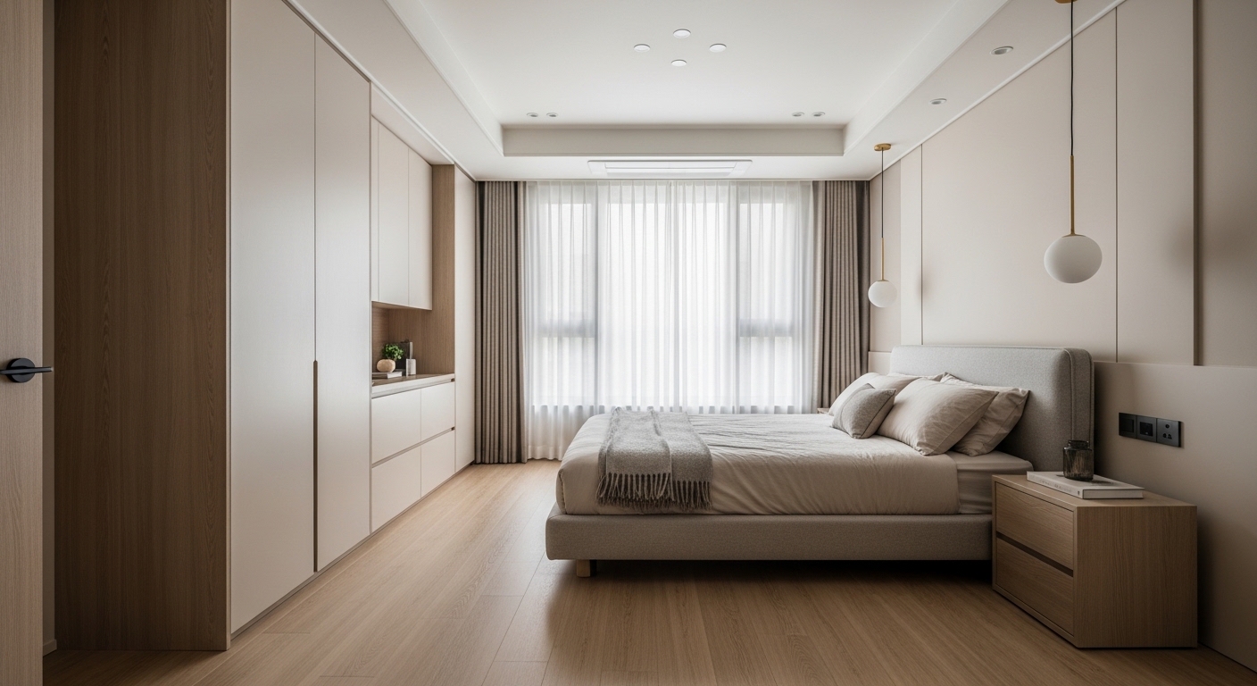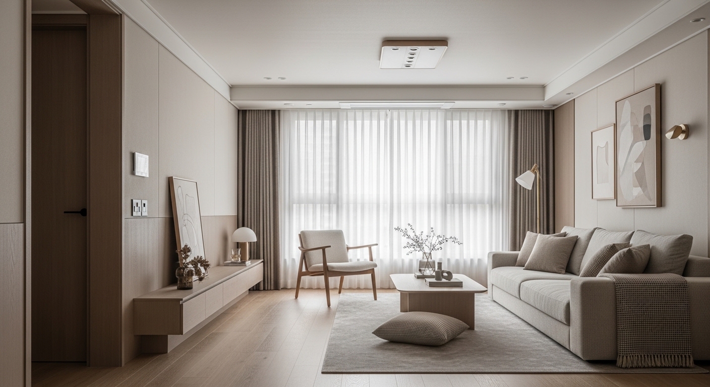 - 화이트·라이트 그레이 톤 기반의 미니멀한 공간 연출